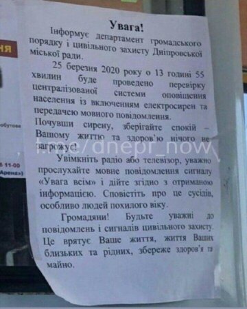 "Это сохранит Вашу жизнь, жизнь Ваших блиских и родных, сохранит здоровье и имущество", - предупредили днепрян.