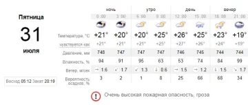 С утра прохладно - от 20 до 24 градусов со знаком плюс. Температура днем - от 23 до 26. Дождь не даст земле как следует прогреться. К вечеру столбики термометров опять опустятся до 23 градусов, а к ночи до 20. Не забывайте дома зонтики и куртки - в этот день они пригодятся.