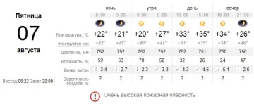 В пятницу, 7 августа, прятаться от солнца будет негде. Весь день небо чистое от облаков, поэтому жарить будет по полной. О дождике мечтать не стоит, хотя оно сильно б облегчило участь горожан. Старайтесь меньше находиться на улице - такая погода не пойдет на пользу.