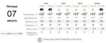 Ветер с северо-восточного направления, усилится к вечеру до 5 метров в секунду. В этот день синоптики отмечают слишком высокую пожарную опасность.