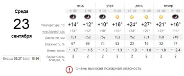 23 сентября в Днепре на дождик опять надеяться не стоит. Целый день будет печь солнце - в городе объявили пожарную опасность. К счастью, сильного ветра не будет. Он только усложняет ситуацию с погодой.