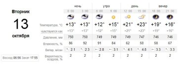13 октября будет пасмурным, но не дождливым. Утро еще будет ясным, а потом на небе начнут появляться облака. К вечеру они уберутся, пугаться их не стоит.