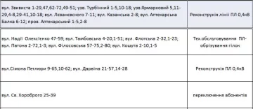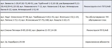 Кроме того, отключат Соборный район областного центра. Там будут обрезать деревья до 17.00. Электричество отключат по ул. Мандрыковская 276а-310, 325-329, ул. Космическая 9а, 9б, 9б (СТО), Магазин YAMAHA, переулок Переяславський и улица Писарева.