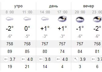 С утра сохранится ночной мороз - до 2 градусов с минусов. Чуть позже потеплеет до нуля градусов, а днем до 1 градуса с плюсом. Такая температура продержится весь день. Но к вечеру опять нагрянет мороз. Сначала до минус 1 градуса, затем до двух градусов ниже нуля. Такая температура продержится всю ночь.