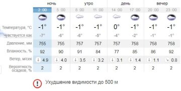 Ветер северный до 3 метров в секунду только с утра, днем он начнет утихать и почти исчезнет к ночи. Отсутствие ветра приведет к тому, что город накроет туман. Синоптики предупреждают об ухудшении видимости до 500 метром.
