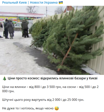 Щодо штучних дерев, то ціни на них ще вищі – цього року за них просять від 2 000 до захмарних 25 тисяч гривень.
