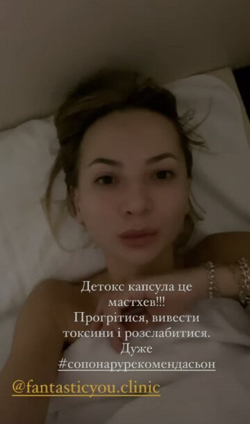 У своїй публікації артистка написала про те, що вона відвідала салон краси. За словами Ірини, ця процедура називається "Детокс капсула". Сенс процедури, пояснила Сопонару, в тому, щоб вивести з організму токсини, а також розслабитися та прогрітися. Судячи з усього, зірка отримала заряд енергії завдяки такому відпочинку.