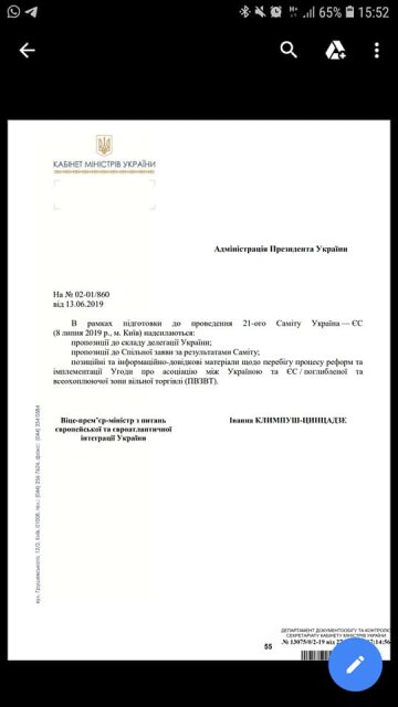 Также он опубликовал письмо главы офиса президента Андрея Богдана от 13 июня к вице-премьеру с призывом до 28 июня прислать предложения по составу делегации Украины в саммите с ЕС, а также позиционные материалы по вопросам повестки дня. Кроме того, он опубликовал письмо Климпуш-Цинцадзе к ОПУ опять же от 13 июня с предложениями и позицией.
