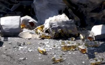 На видео, опубликованном изданием видно, что фура просто огромная. Она была полностью загружена пивом. Теперь все содержимое вывалилось на дорогу. На асфальте валяются разбитые стеклянные бутылки с пивом и ПЭТ-упаковки.