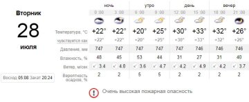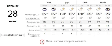 Ветер северо-восточный - до 5 метров в секунду. Влажность воздуха ниже нормы, что характерно для этого региона. Такое сочетание может способствовать пожарам - будьте осторожны с огнем.