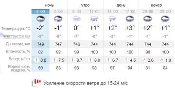 С рассвета в городе будет идти сильный снег приблизительно до обеда. С обеда он перерастет в дождь, который время от времени будет превращаться в ливень.