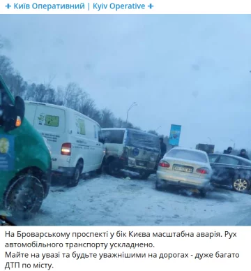 Повідомляється, що на Броварському проспекті у напрямку Києва масштабна аварія – рух автомобільного транспорту утруднений. Водіям порекомендували бути уважнішими на дорогах, оскільки по місту фіксують дуже багато ДТП.