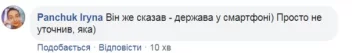 Другие пользователи просят обратить на это внимание СБУ. А Ирина Панчук написала так: "Он сказал – государство в смартфоне. Просто не уточнил, какое".