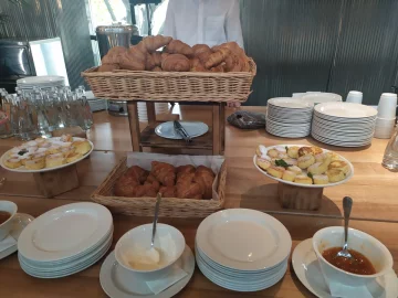 Уже с утра присутствовавших на мероприятии журналистов угощали кофе, круассанами, йогуртами и сырниками. Ближе ко второй половине дня для представителей прессы накрыли фуршет, во время которого журналистам предложили картошку-фри, бургеры, пиццу и минеральную воду.
