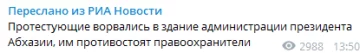 Очередной митинг произошел в Абхазии. На площади под администрацией президента собралось около 500 человек, включая и представителей силовиков. об этом сообщает телеграмм-канал.